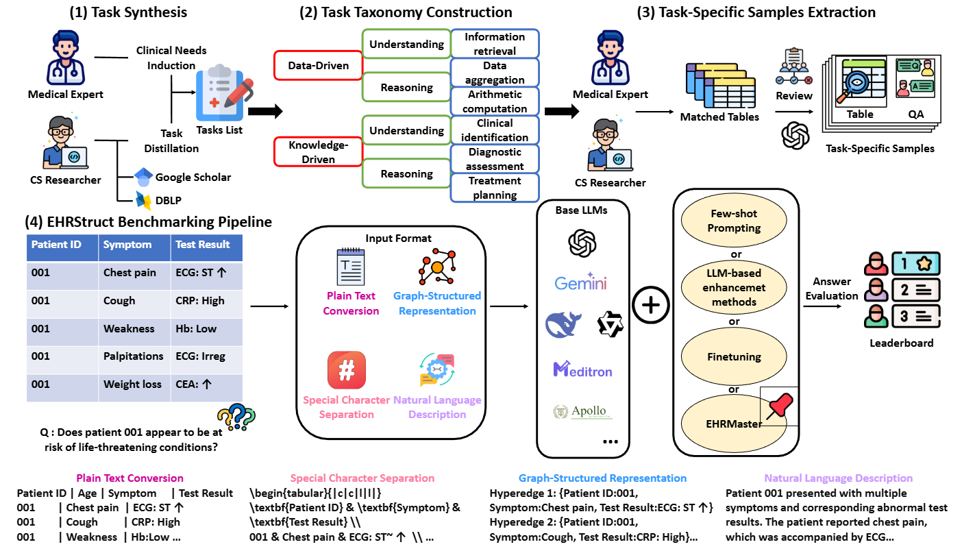 EHRStruct: A Comprehensive Benchmark Framework for Evaluating Large Language Models on Structured Electronic Health Record Tasks Xiao Yang, Xuejiao Zhao†, Zhiqi Shen († Corresponding author) The 40th Annual AAAI Conference on Artificial Intelligence, AAAI 2026 (Oral) [Paperlink] [Code] [Challenge] [News_AIEra] [Project Page] |